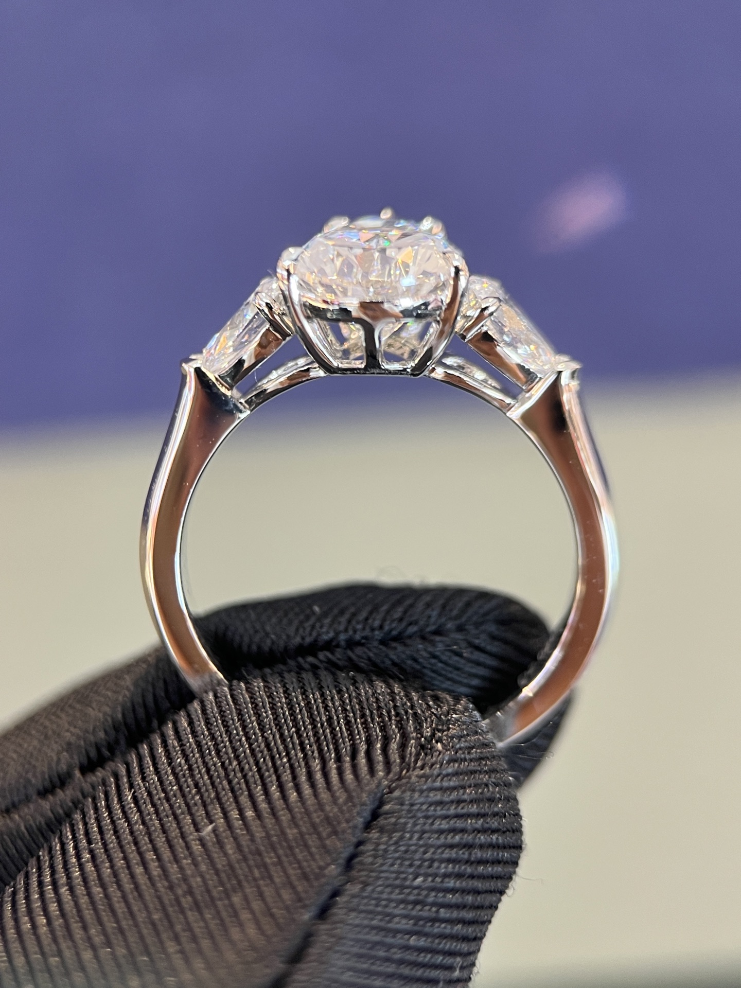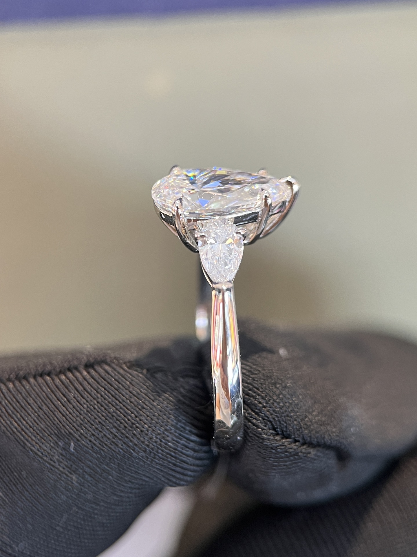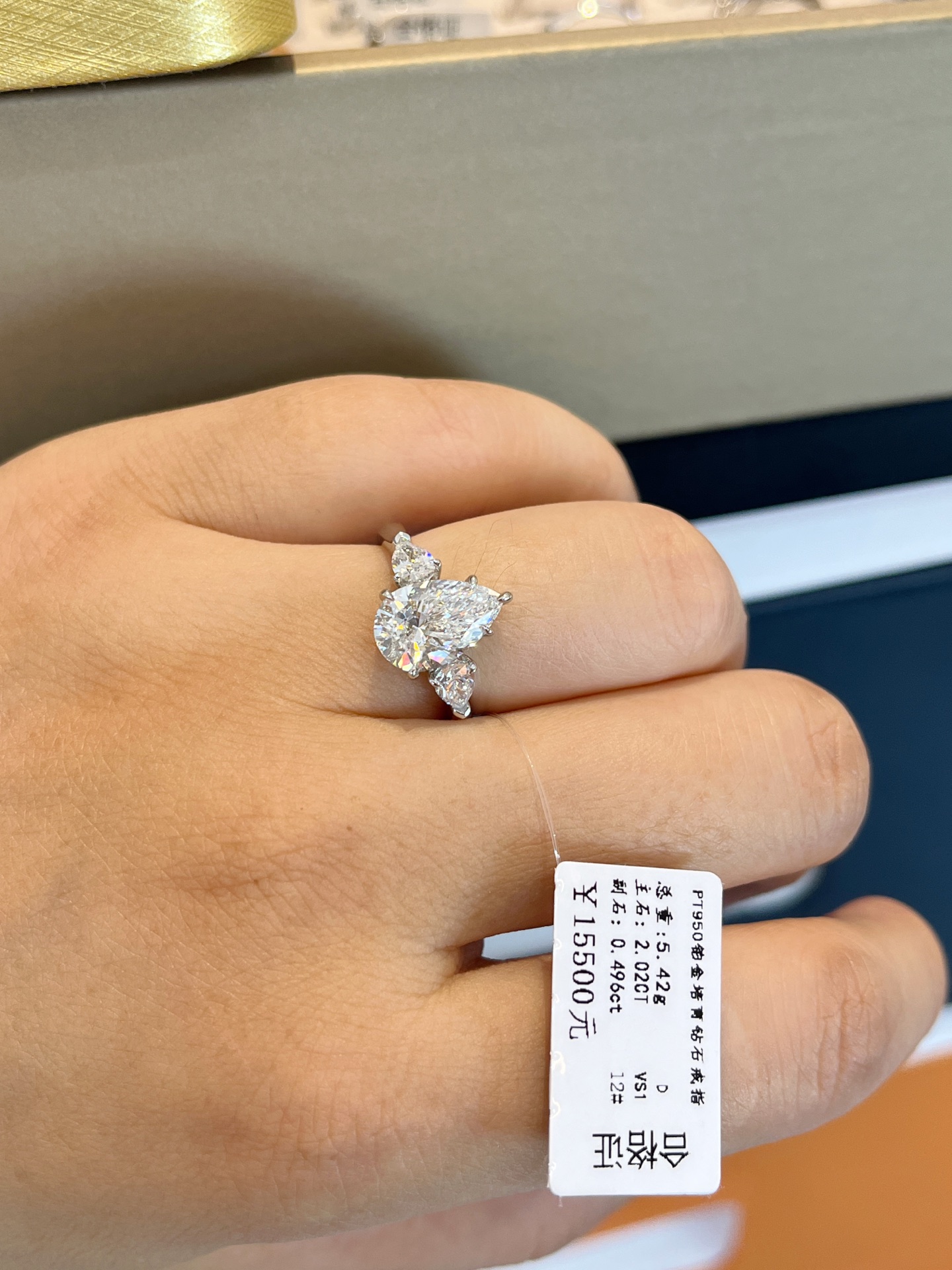 Custom-made PT950 platinum pear-shaped three-stone diamond ring, 2.02 carats, size 12 (adjustable), D color VS1, IGI certificate 712567263, listed price $2,188
