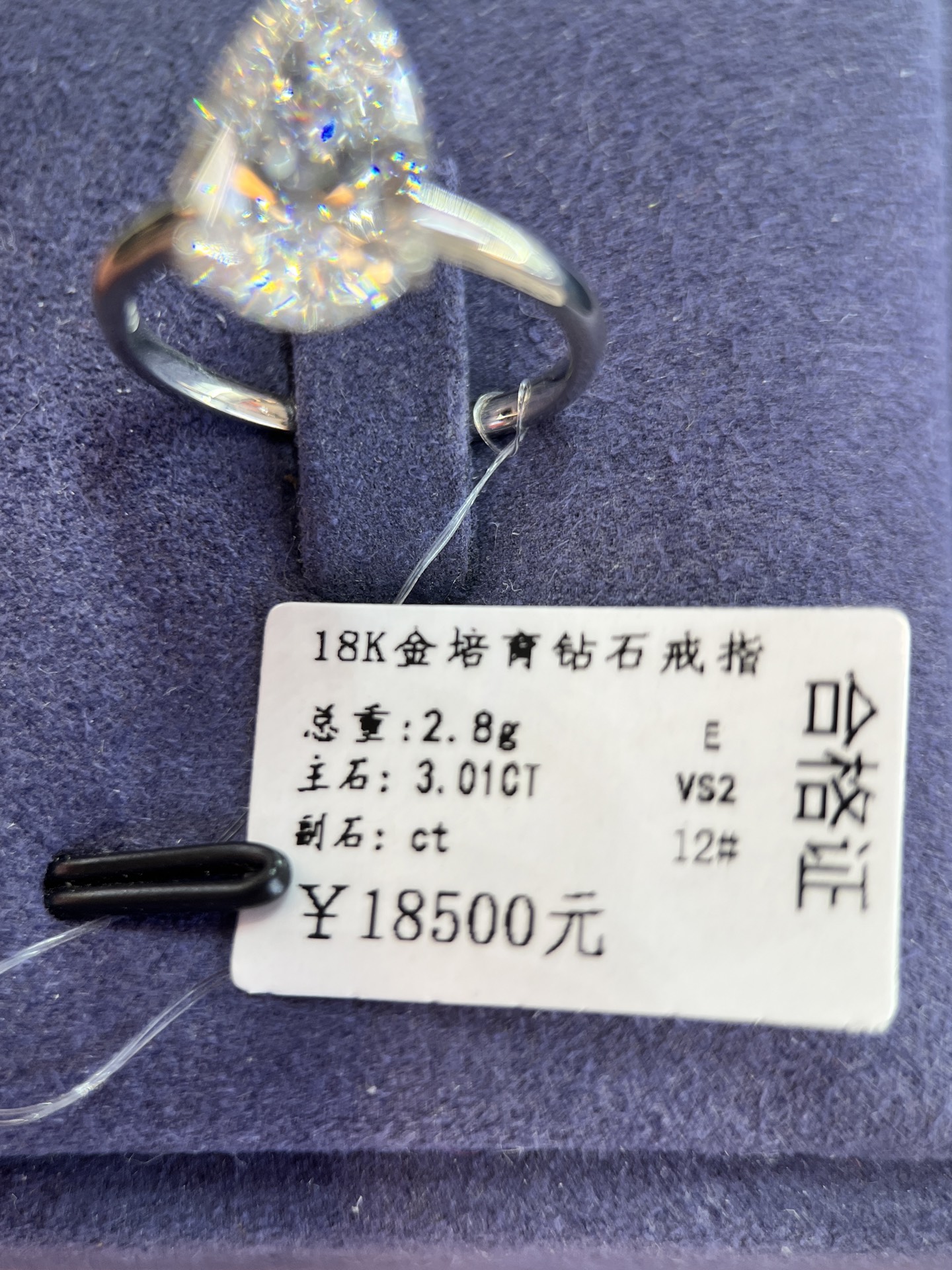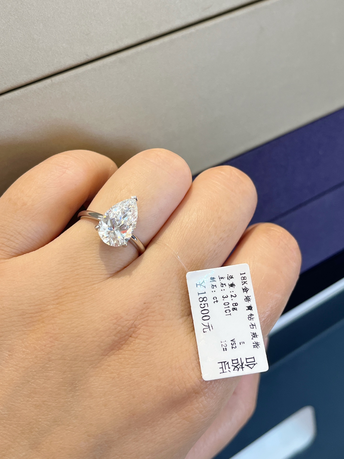Cultivated 18k gold pear-shaped finished diamond ring, 3.01 carats, size 12 (size can be adjusted), color E, clarity VS2, IGI certificate 677558059, listed price $2,600