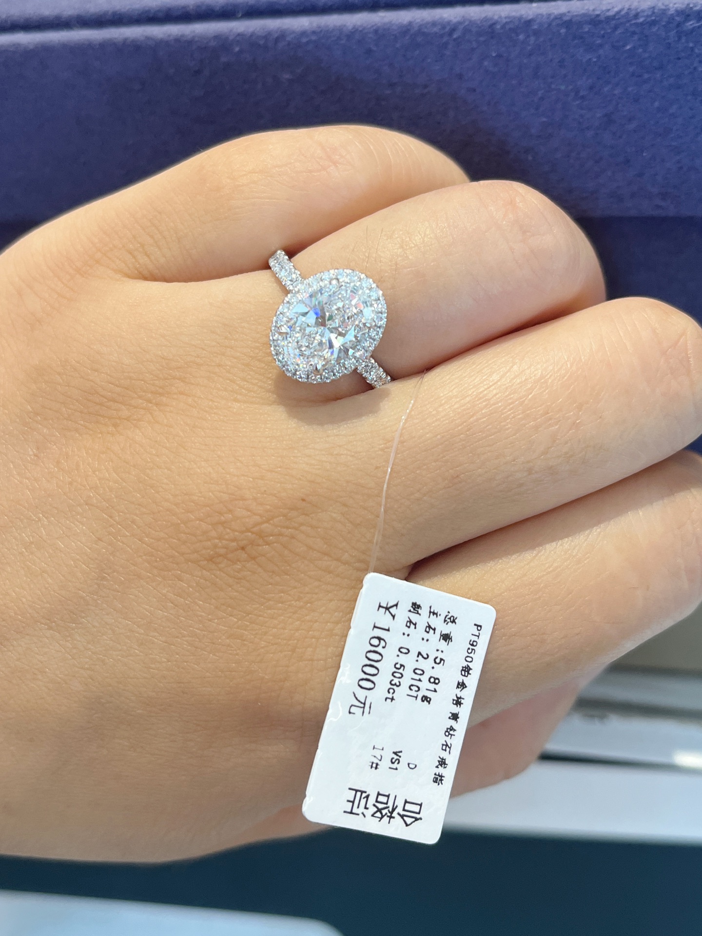 Cultivated diamond PT950 platinum oval finished diamond ring, 2.01 carats, size 17 (adjustable), D color, VS1 clarity, IGI certificate 727558457, listed price $2,288.