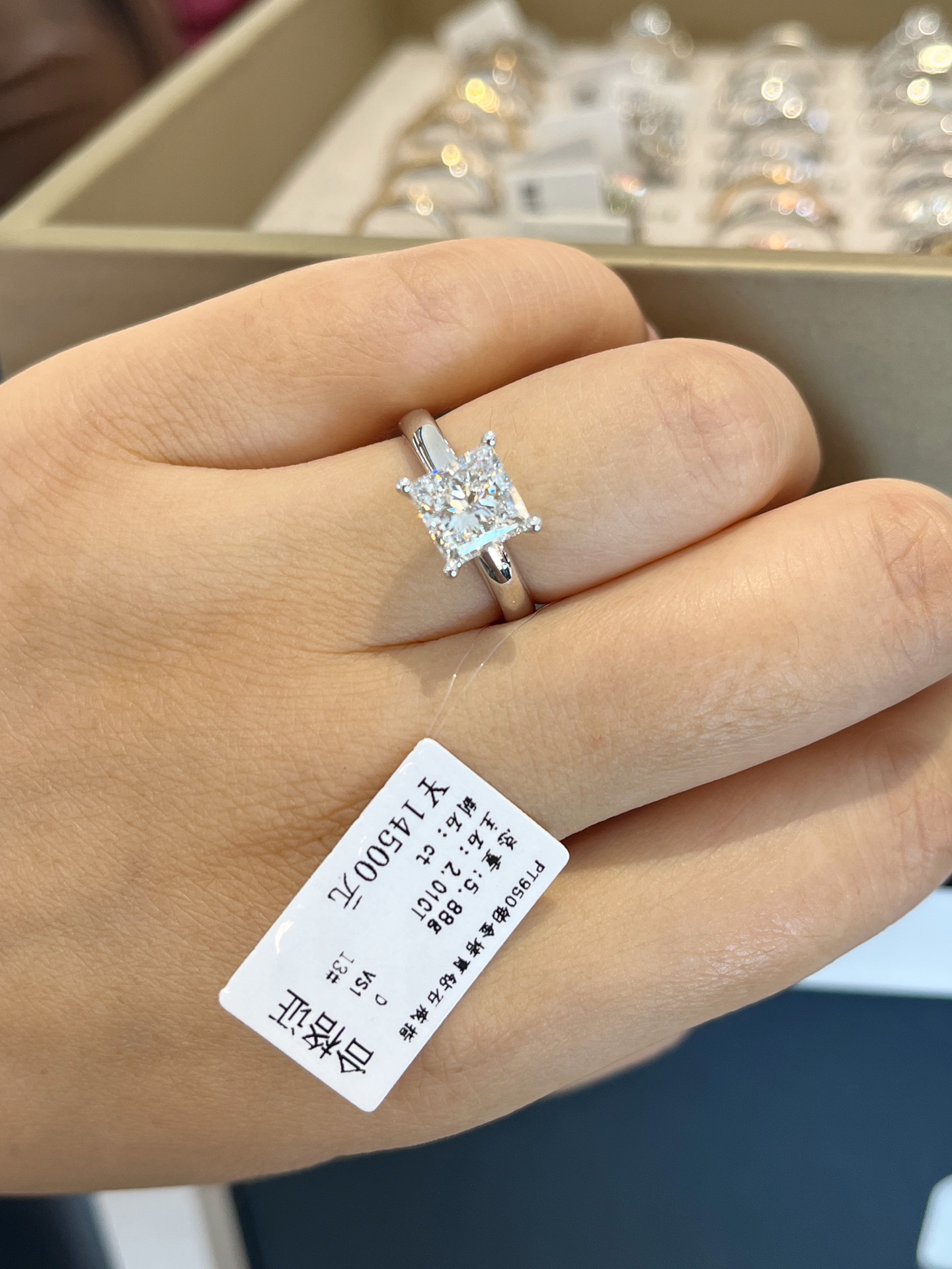 Cultivated diamond PT950 platinum princess-cut finished diamond ring, 2.01 carats, size 13 (adjustable), D color, VS1 clarity, IGI certificate 710502948, listed price $2,088